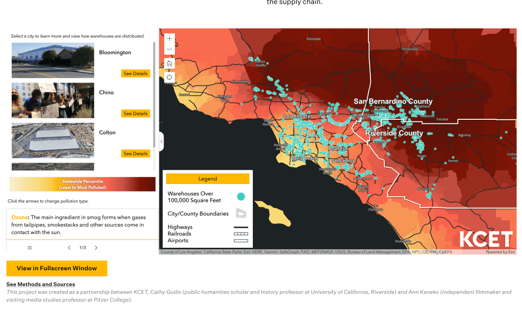 Some notable projects include field guides to the Los Angeles River in which we aggregated access points, walking trails, and amenities along 51 miles of the river; mapping pollution in the Inland Empire in which we sourced public information and used GIS to map it; and audio/photography portraits of residents in Northeast Los Angeles.